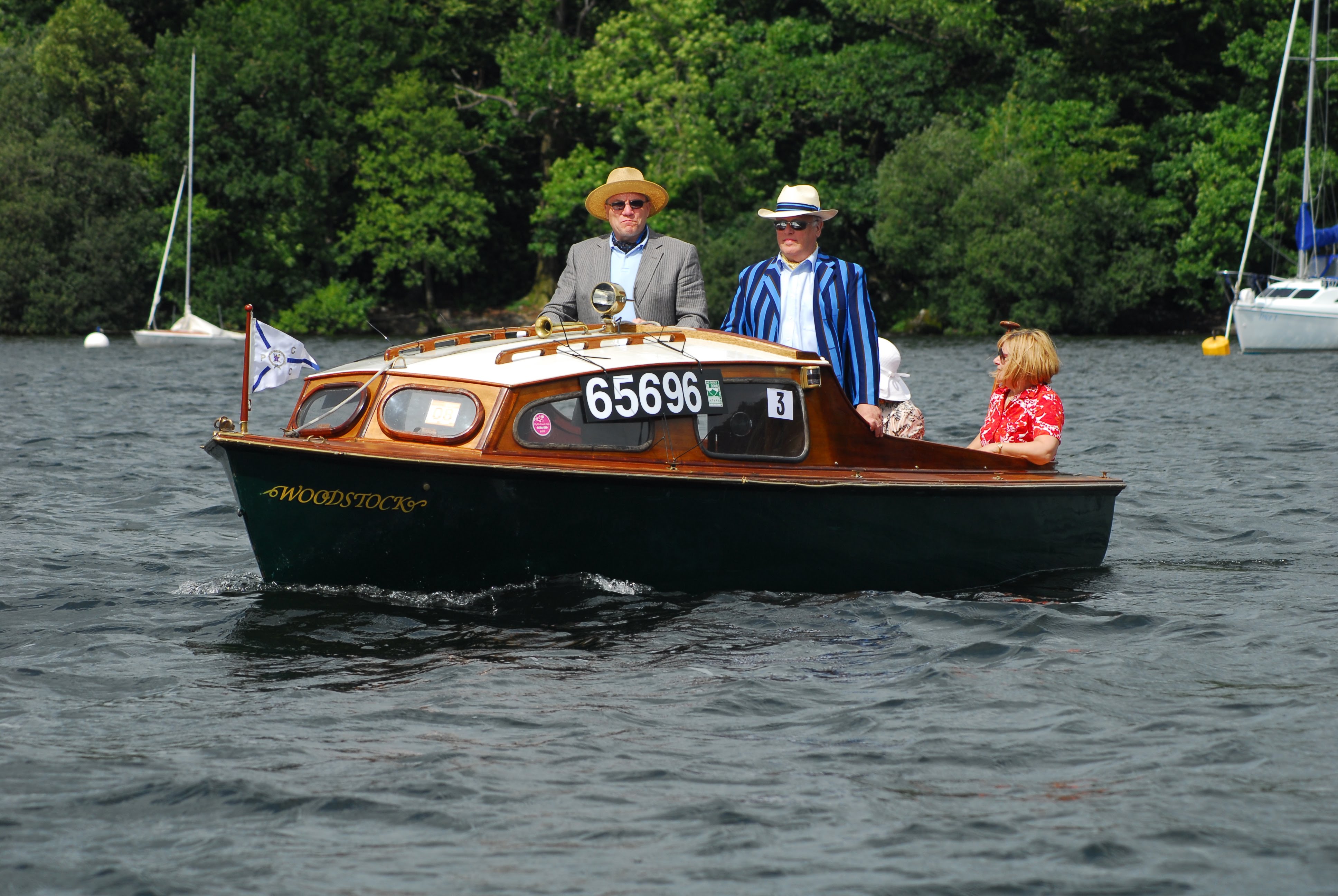 Faun, Woodstock in the Concours parade at the BCMBR Windermere in 2008 The Faun was a small river cruiser based on the Falcon Hull. Unusually for a sailing boat, the Falcon started life as a motor launch. Designed by Sir Eldon Trimingham as a service launch for the Royal Bermuda Yacht Club in the mid 50's. The Faun was officially launched at the 1959 London Boat Show. Many were completed for the River Hire market. The one known to the club is "Woodstock" which is based generally near Henley on the Thames but she is trailed to other rallies in the country throughout the season. "Woodstock" has been converted to inboard power; originally with a Stuart-Turner P55 8HP which was not very successful; and now sports a Vetus 18HP Diesel engine. The owner would have us believe that it is so efficient, he has yet to use up the original half-tankful of diesel! Vital Statistics: Length: 16' 6" Beam: 5' 11" Hull Draught: 12" Weight (less engine): 260lb FalconHere's Rupert, heading off into the wide blue yonder of Lake Windermere. It might look like a steam boat, but propulsion is via a Dolphin two cylinder two stroke engine. A scan of the Fairey Marine company magazine 'Fairey Review' announcement of the Falcon is available to download below.